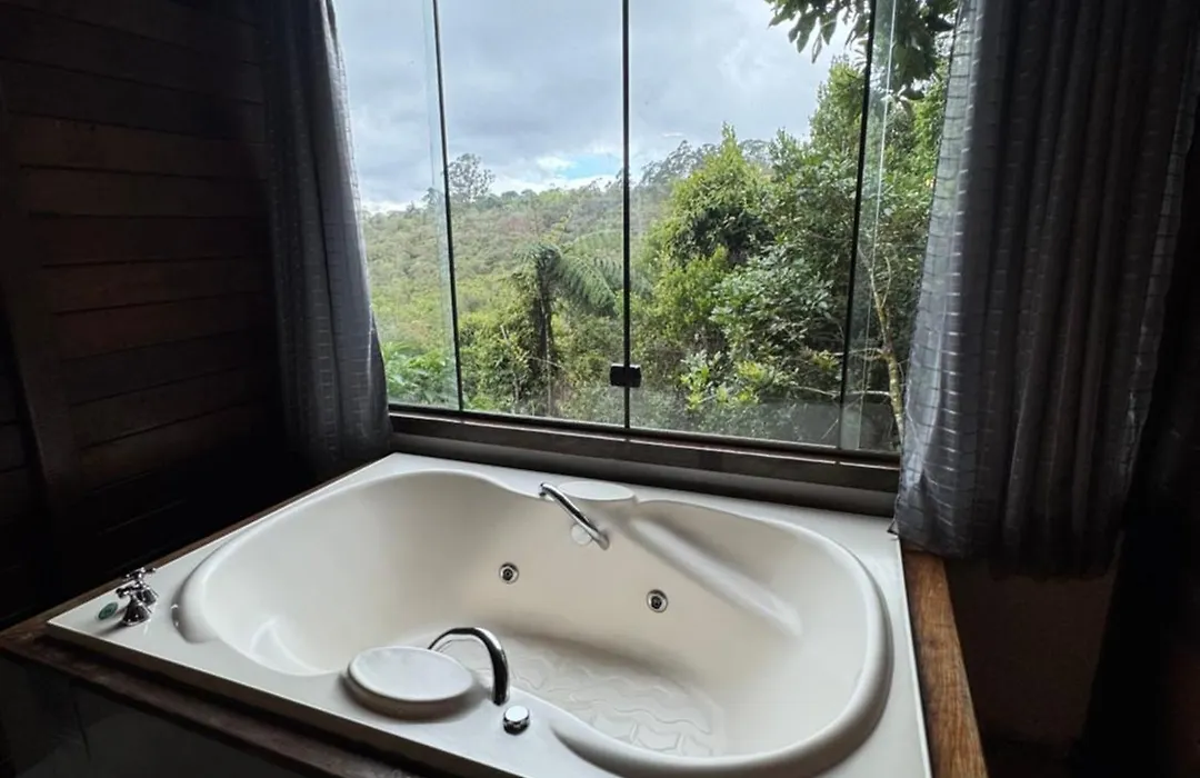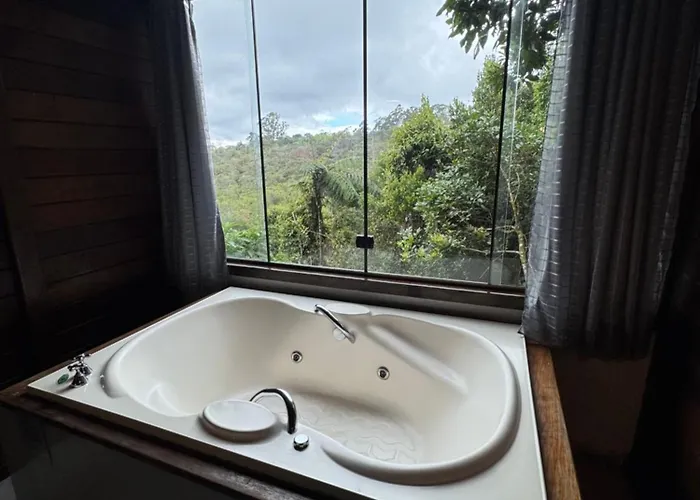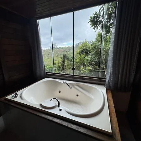 Encanto Da Mata - Chale Embauba - Lavras Novas Mg villa includes a bathroom with a separate toilet, a hot tub, and a shower. Bathrooms also come with bath sheets for your convenience.